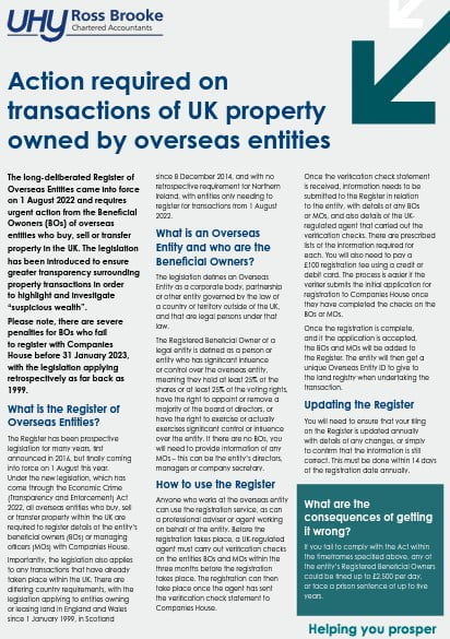 Please read more by downloading our factsheet, about the requirements of the Register, which also details the definitions of an overseas entity and the beneficial owners or managing officers.